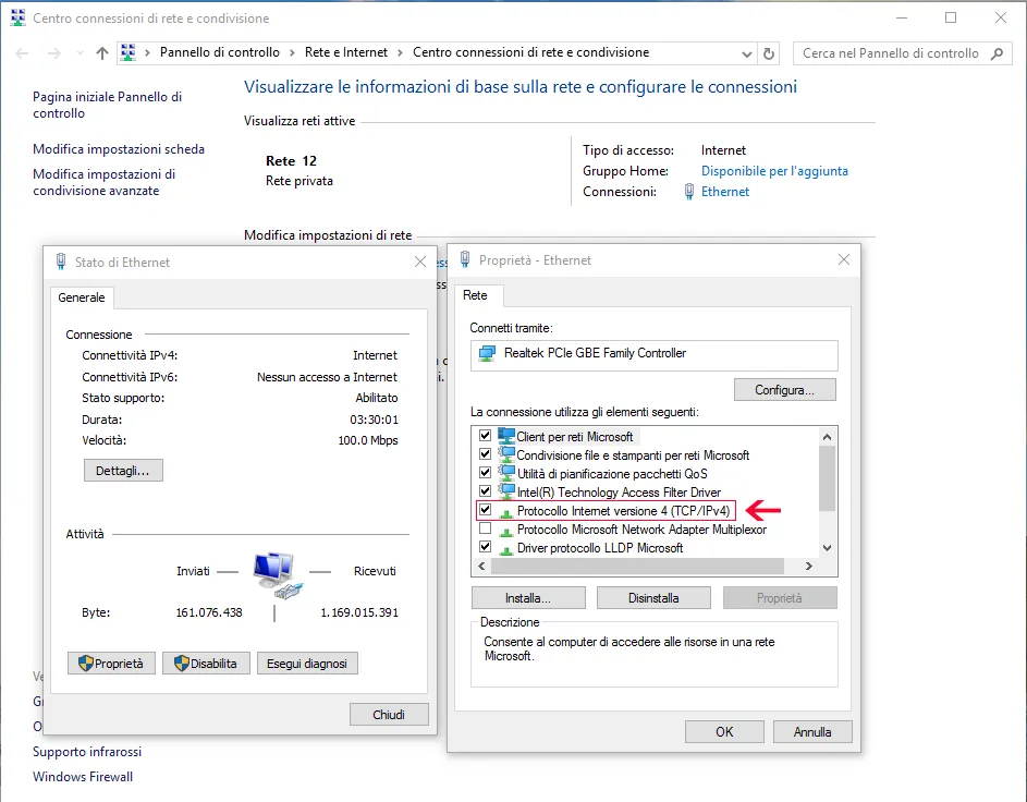 Ora clicchiamo sulla voce “Protocollo Internet versione 4 (TCP/IPv4)”.