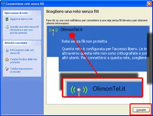 Tra le reti disponibili selezionare quella di tuo interesse (ES : SSID tipo: OlimonTel – wifixxxxx):