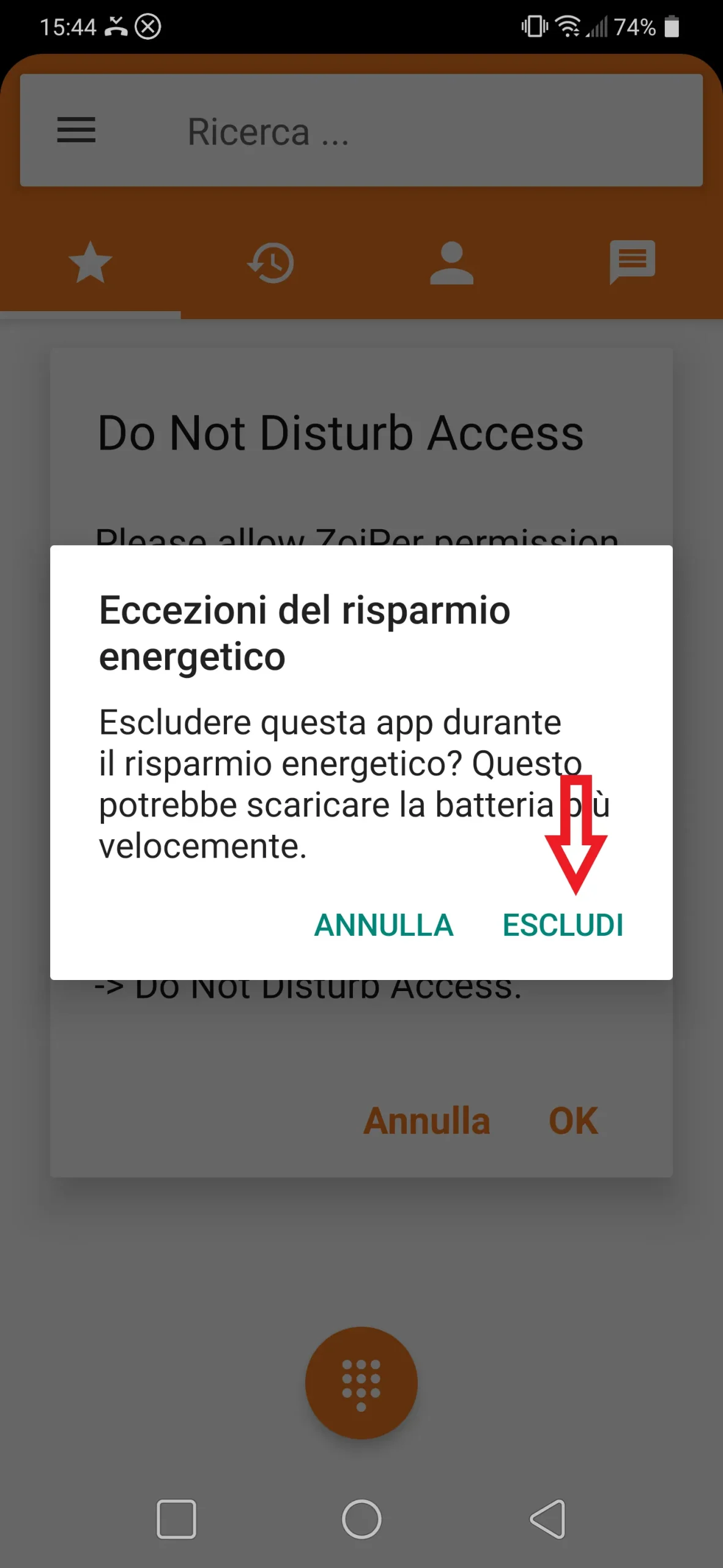 In molti casi la registrazione e la stabilità dell’applicazione sono fortemente influenzati dalle opzioni di risparmio energia dello smartphone stesso, consigliamo di verificare le impostazioni di risparmi energia come consigliato dal produttore ZOIPER.