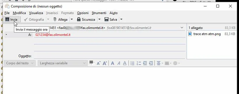 NON è necessario inserire oggetto e corpo del messaggio i quali non verranno presi in considerazione, verranno inviati come fax i soli allegati.