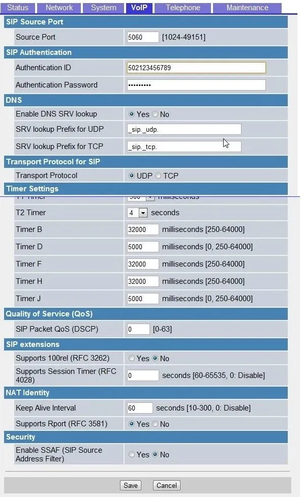 Inserire i propri dati di autenticazione, nei campi Sip URI, Autentication ID, inserire la propria login compresa del 5 iniziale