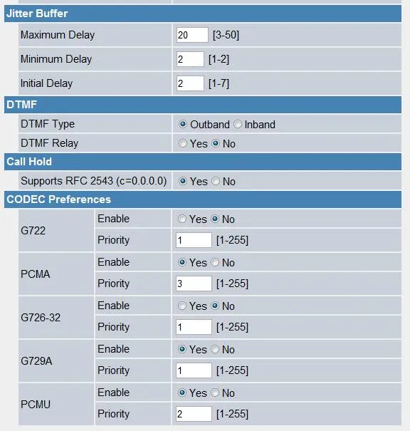 Il codec g711 disponibile ha una qualità audio ottima a scapito della banda utilizzata, che è molto elevata, a differenza del codec G729 che ottimizza audio e banda.