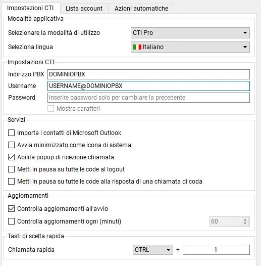 In questa sezione è possibile selezionare la modalità con cui si vuole che venga eseguita l’applicazione: Kalliope CTI Desktop oppure Kalliope CTI Desktop Phone.