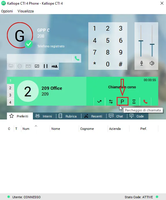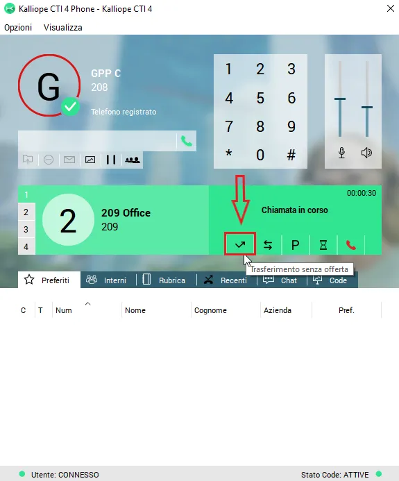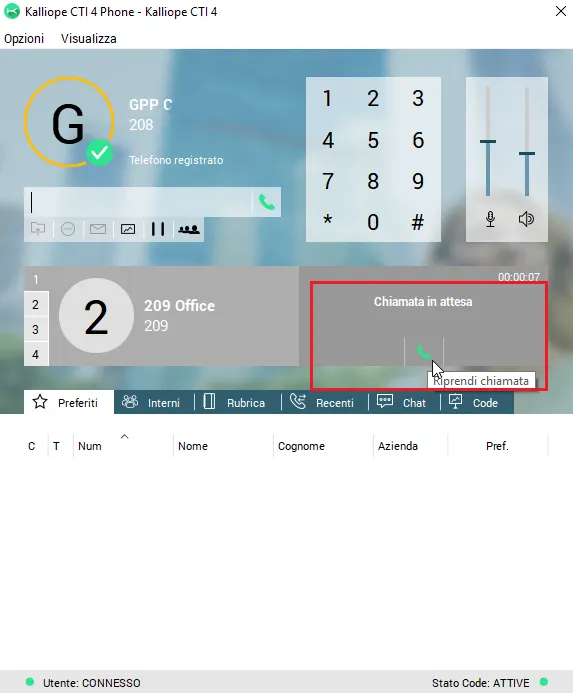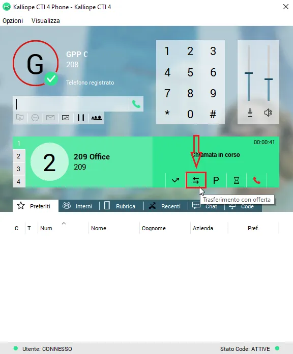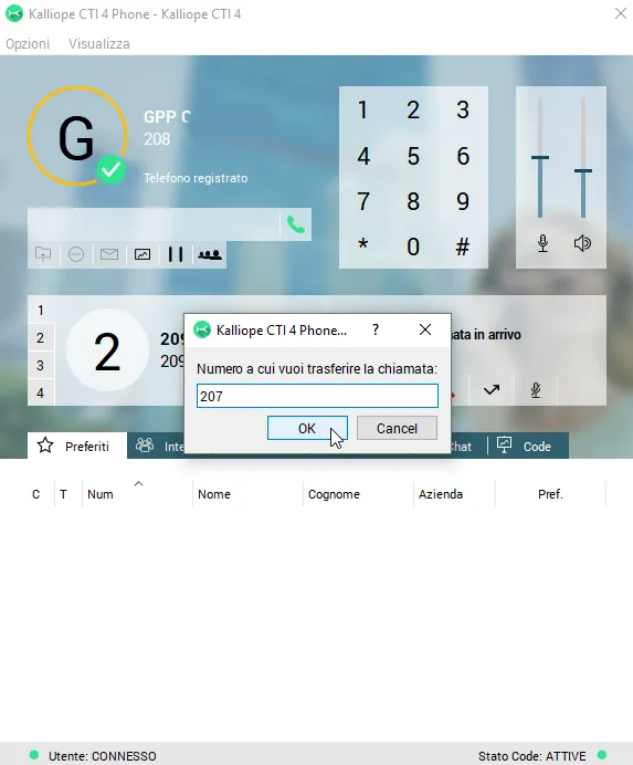 Una volta installata l’applicazione, configurato l’account CTI PHONE è possibile gestire la chiamata in corso con varie funzionalità.