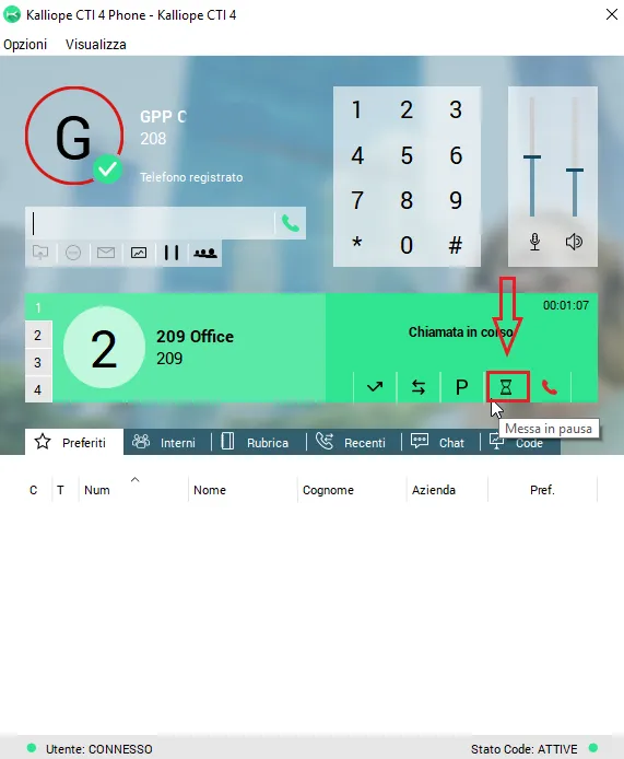Messa in pausa della chiamata.